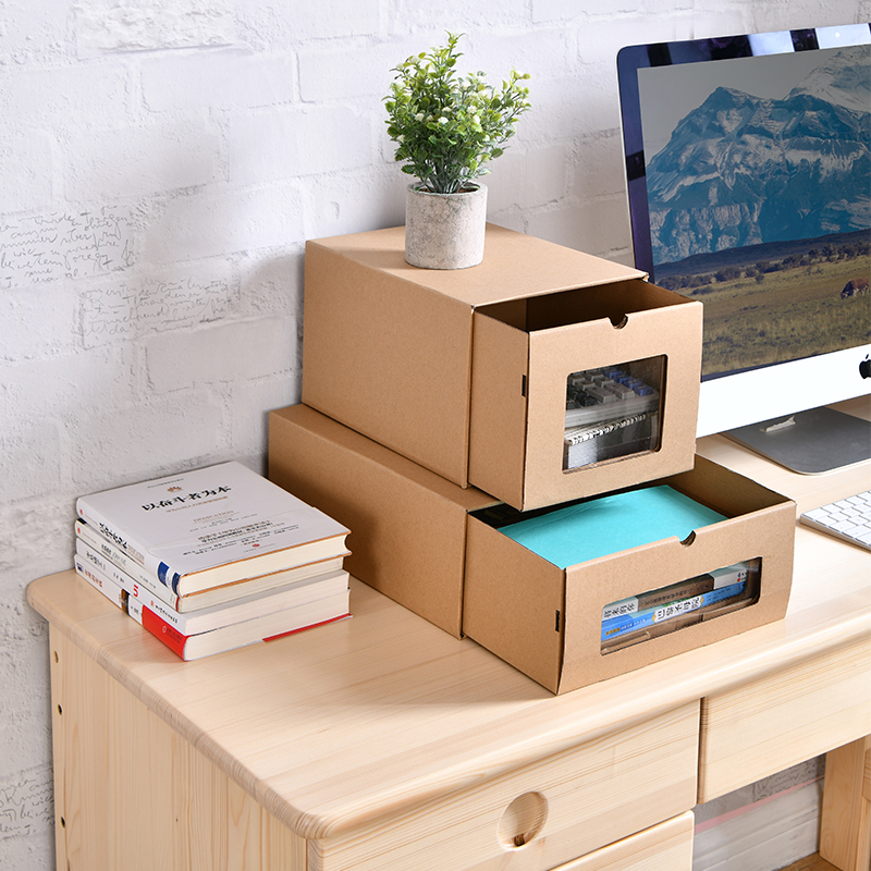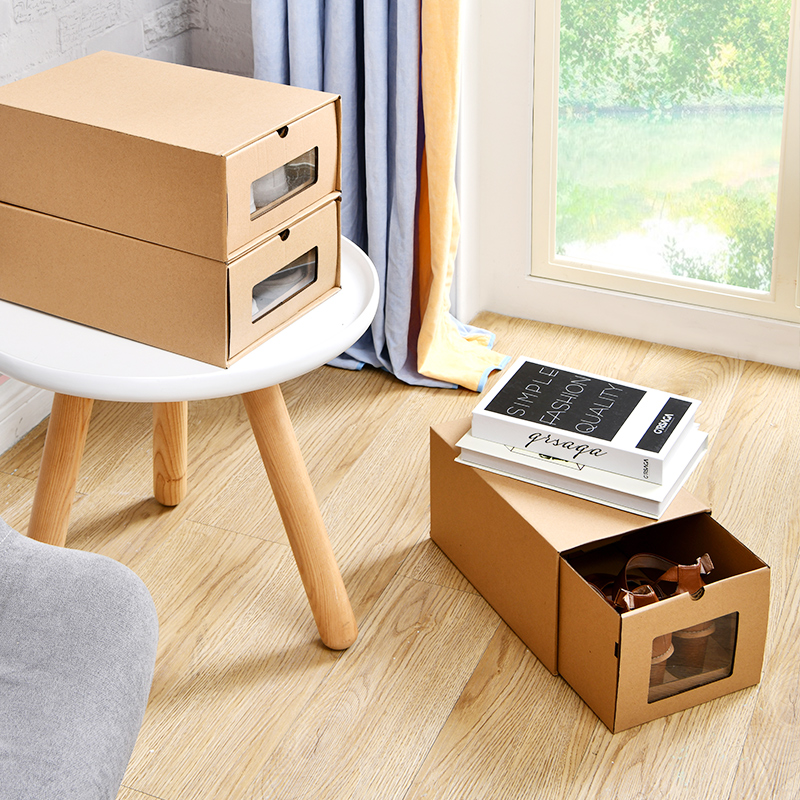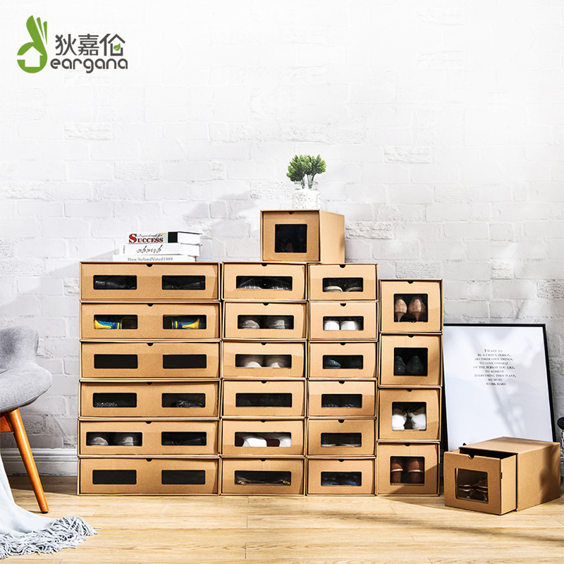 Household shoe box kraft paper transparent drawer type simple dust-proof men's and women's shoes desktop storage box boot box dormitory artifact