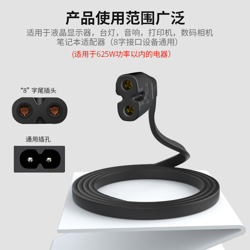 Eight 8-character power cord for a long time Jager led small table lamp charger line audio Hisense TCL TV two holes universal