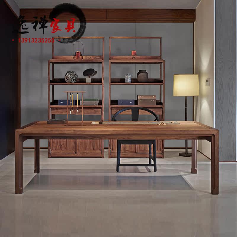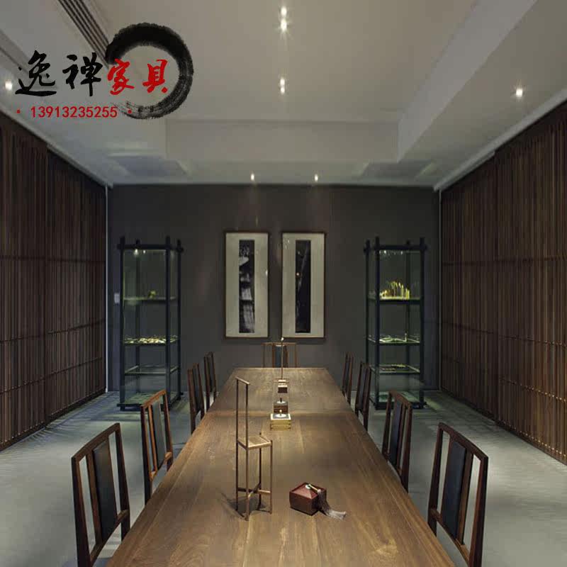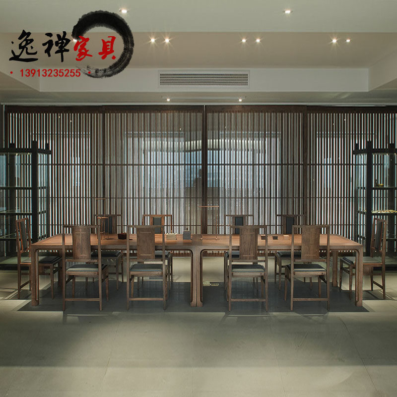 Half-wood furniture new Chinese style solid wood conference table simple modern large long table and chair combination Zen long table calligraphy and painting table