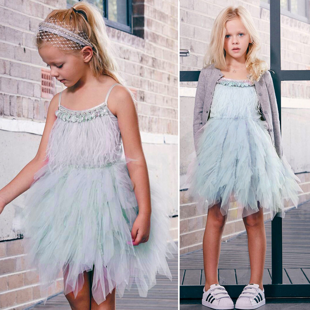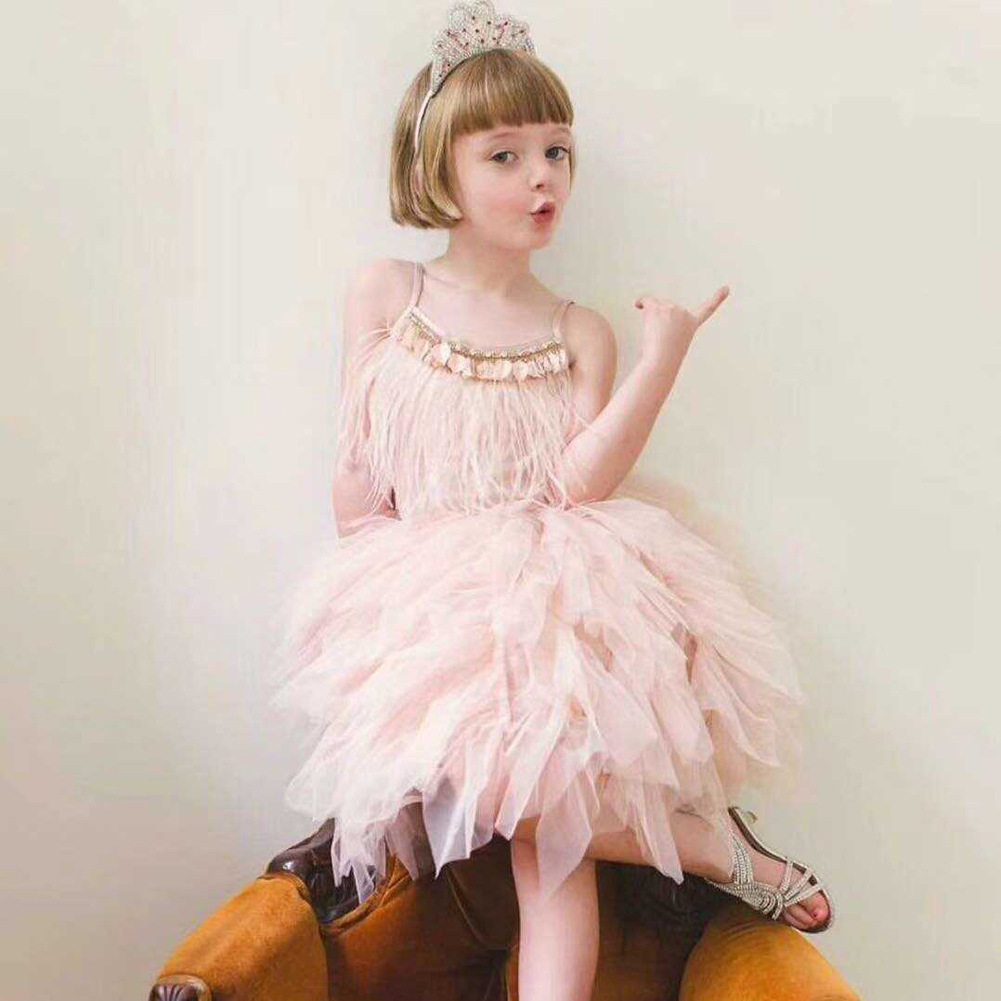 Girl's 2018 new swan feathers foreign dress fluffy dress for children's performance Birthday Gown