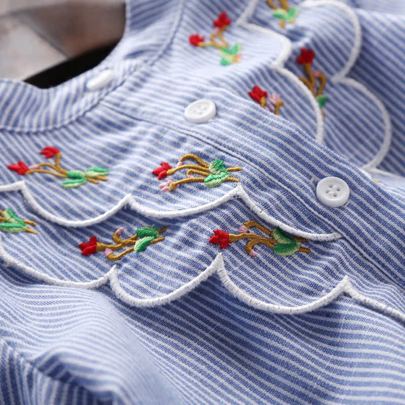 Girl Lap Shirt 2021 Spring Autumn Han Edition Children Suit Baby Cotton Linen Shirt Blue Stripe 100 Hitch Blouse