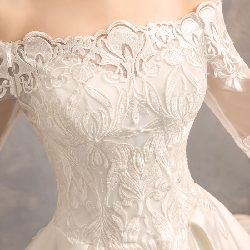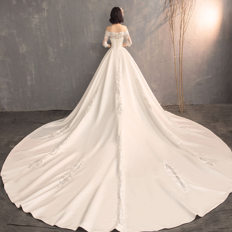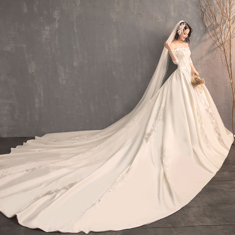 Satin Wedding Dress 2023 New Shoulder - long Length Length Last Princess Dream - and - lean Palace Retrospective Main Yarn