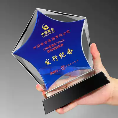 Five-pointed star trophy custom production high-end creative competition crystal license plate custom medal Custom lettering printing