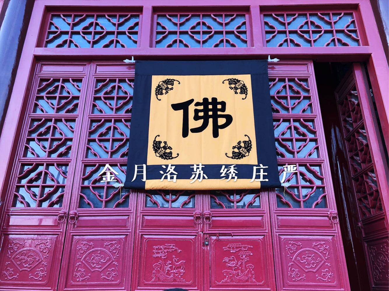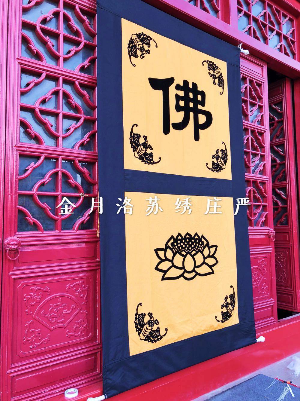Golden Moon Losu Embroidery (Door Curtain) Temple University Grand Xiongbao Temple Buddha Word Lotus Batman Baoji Baogai Manufacturers Direct Sale