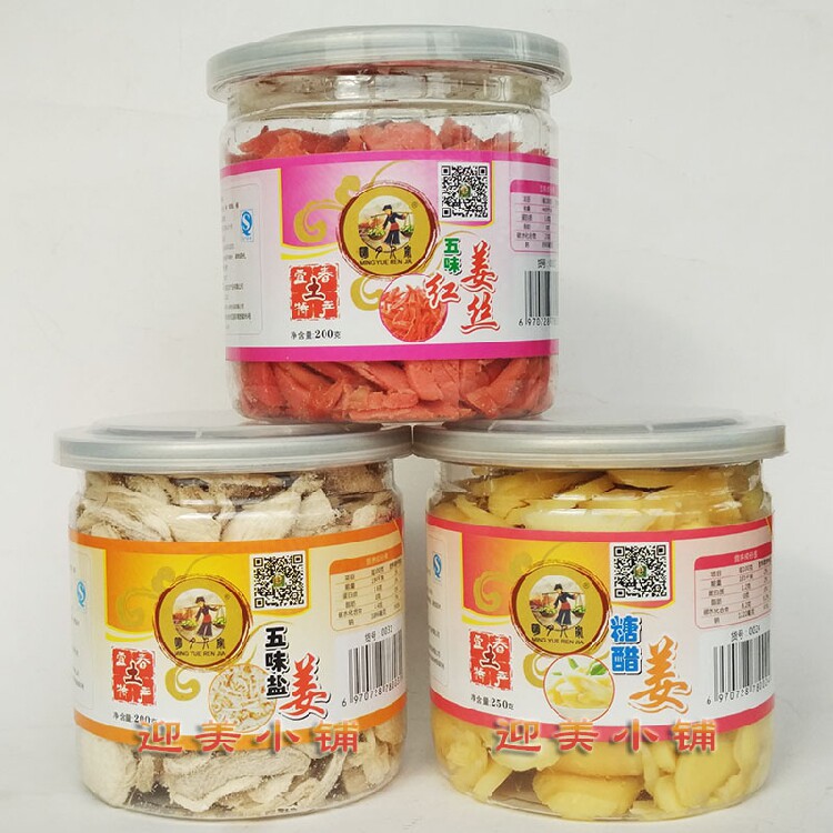 Two taste salt ginger 200g x 1 cans five flavored ginger 200g x 1 cans of sugar ginger 200g x 1 cans of five flavored ginger 200g x 2 cans of five taste red ginger 200g x 2 cans of sugar vinegar ginger