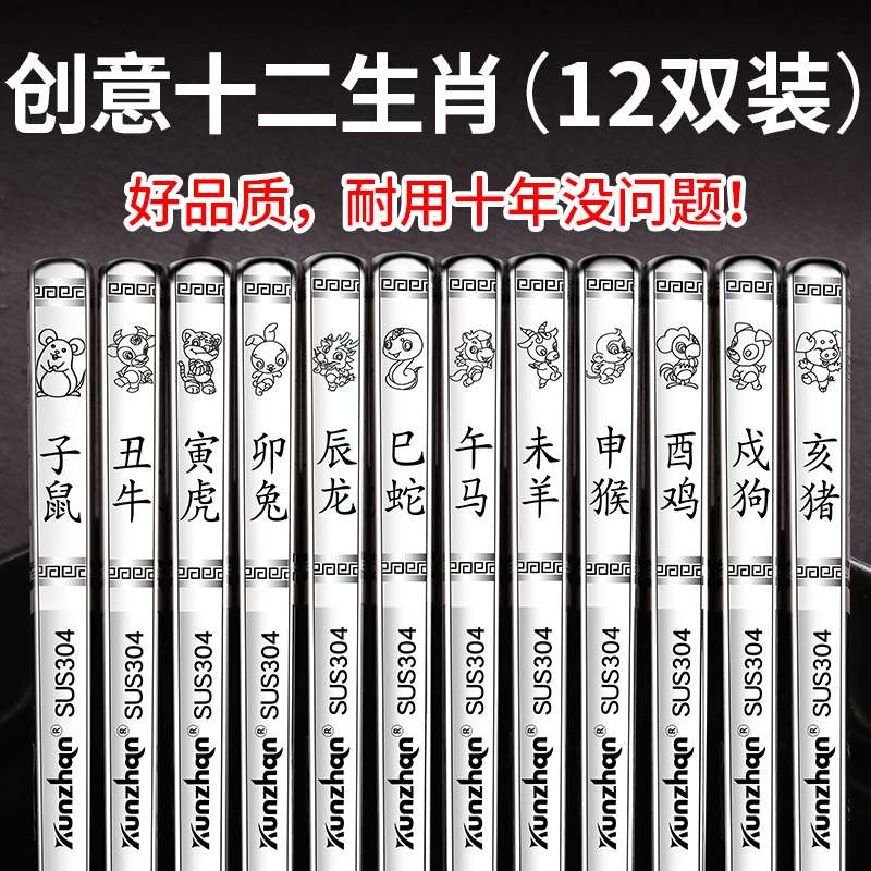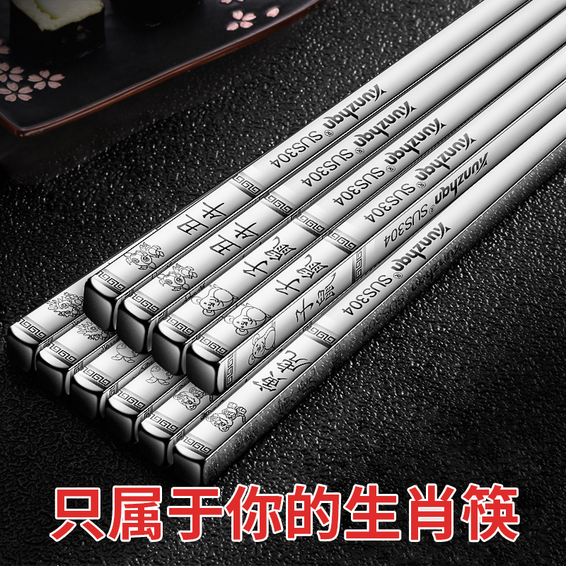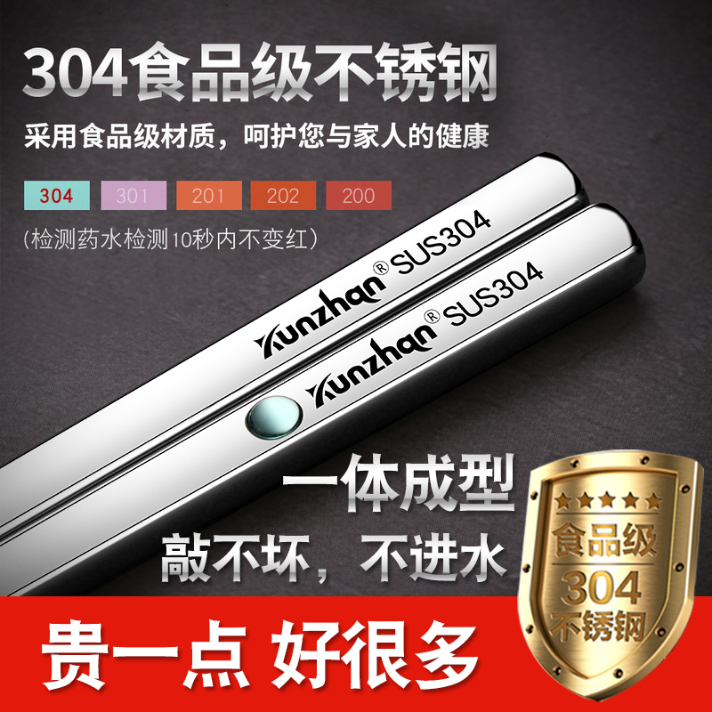 304 stainless steel chopsticks Home anti-slip iron Fast family divided with high temperature resistant and unmoldy 12 double suit metal silver