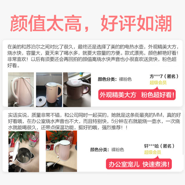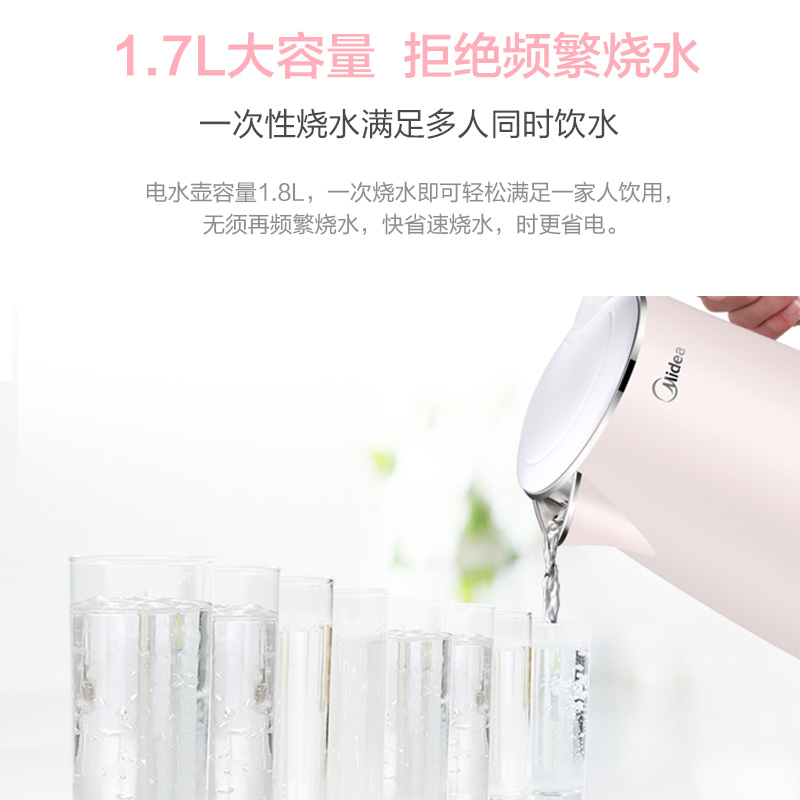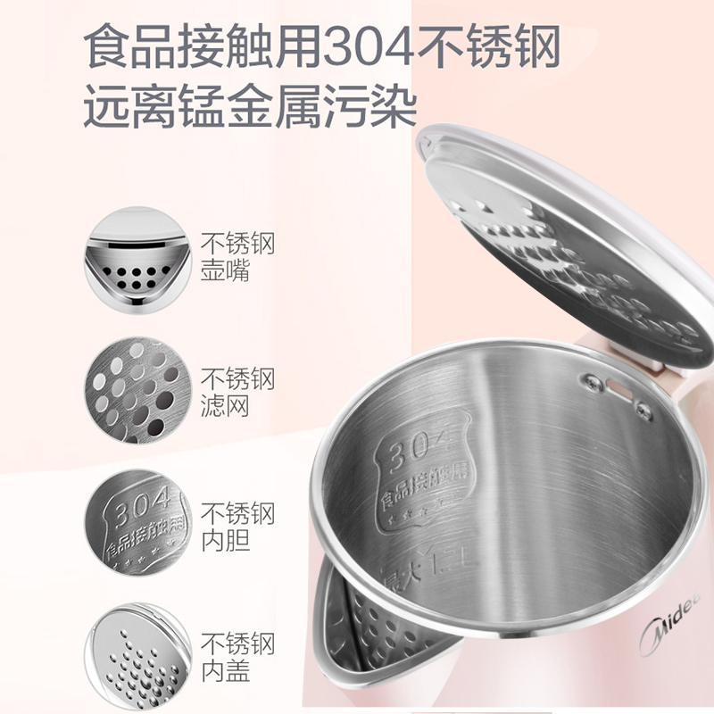 Midea electric kettle home insulation integrated stainless steel electric kettle small hot water large capacity boiling kettle