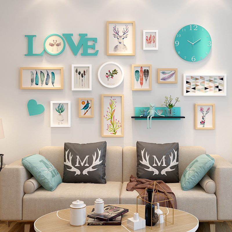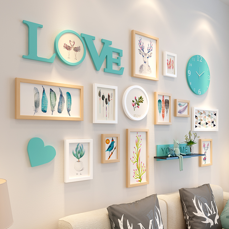 Free punch photo wall decoration Photo frame wall hanging combination Creative personality Bedroom living room photo wall photo decoration