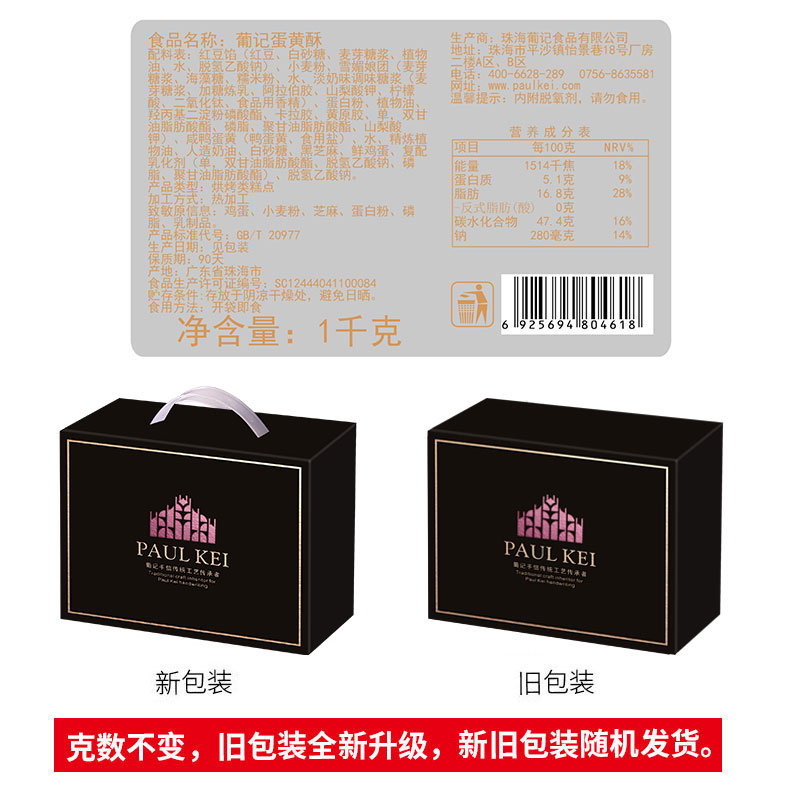 20 original egg yolk crisps (classic portable gift box) 20 durian yolk cakes (classic hand gift box) 20 original egg yolk crisps (black gold gift box with gift bag)