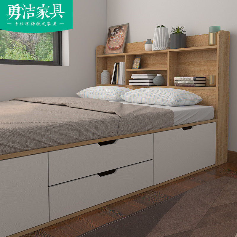 Custom small family type tatami bed and tatami bed head cabinet integrated wardrobe storage cabinet multifunction pedalling rice bed set for special price