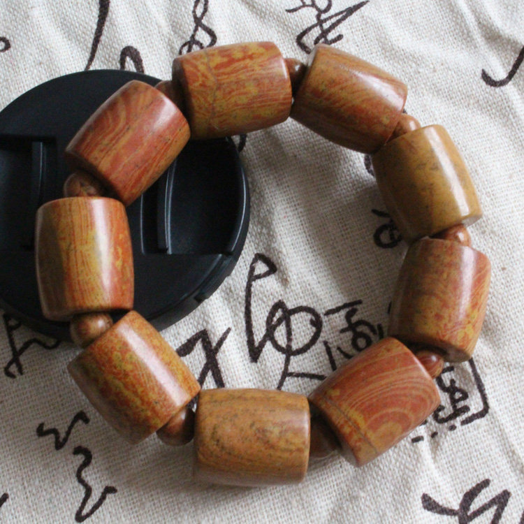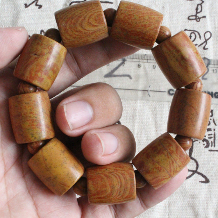 Surabaya rich red large Bianstone tongluo hand string stone drum shape diamond Sutra to attract wealth