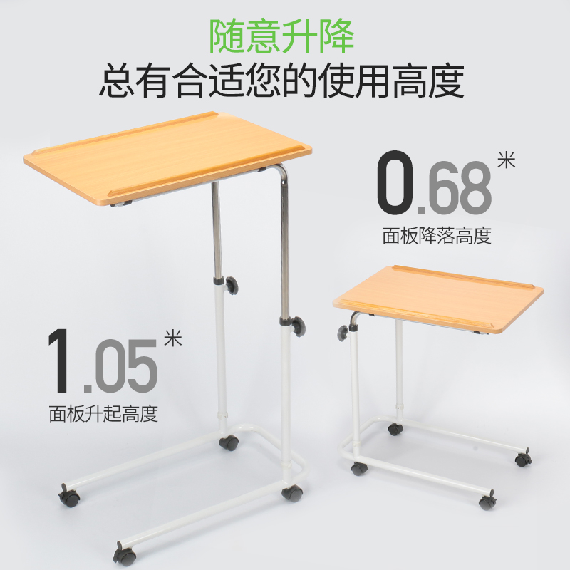 Good step new elderly patient care telescopic adjustable mobile moisture-proof solid wood wear-resistant lockable wheel bed side table
