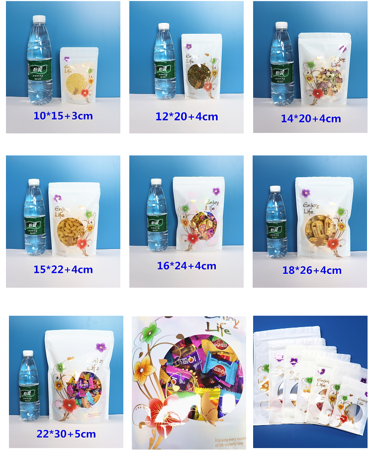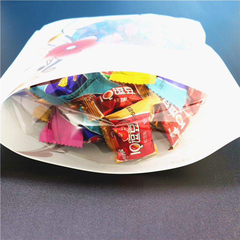 Colour beautiful printed snack food Bags Self-proclaimed Bag Flower Tea Biscuit Bull Rolling Sugar Plastic transparent self-supporting bag