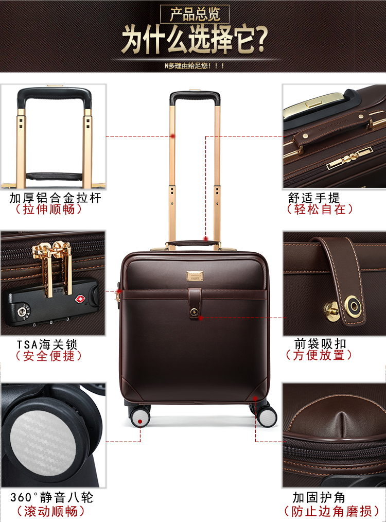 Min Lulaf Laurenma ball primary-secondary box luggage suitcase Male leather case pull-lever box universal wheel woman 18 inch 20 Business boarding suitcase