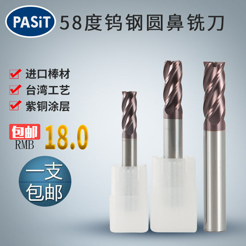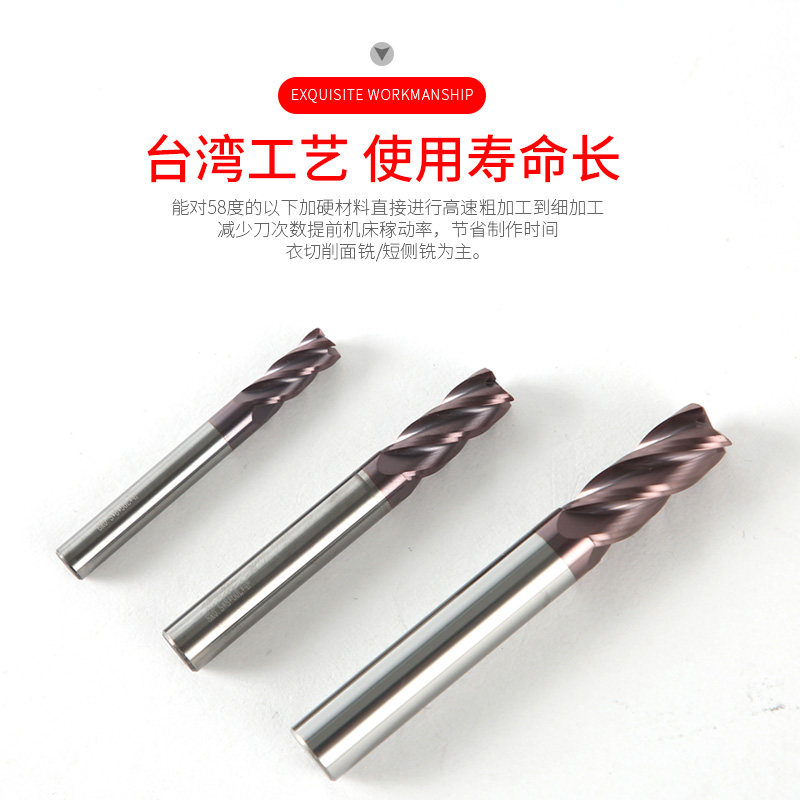 580 tungsten steel milling cutter 58 degrees hard alloy numerical control cutter 4-edge coated round nose knife R angle bull nose stand milling cutter