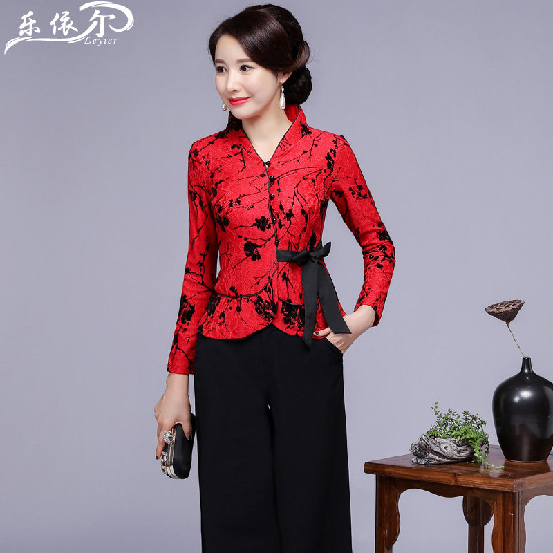 Winter plus suede thickened Tangdress suit Two sets of improved qipao blouses Chinese-Chinese-bridal mother-in-law mother dress wedding banquet