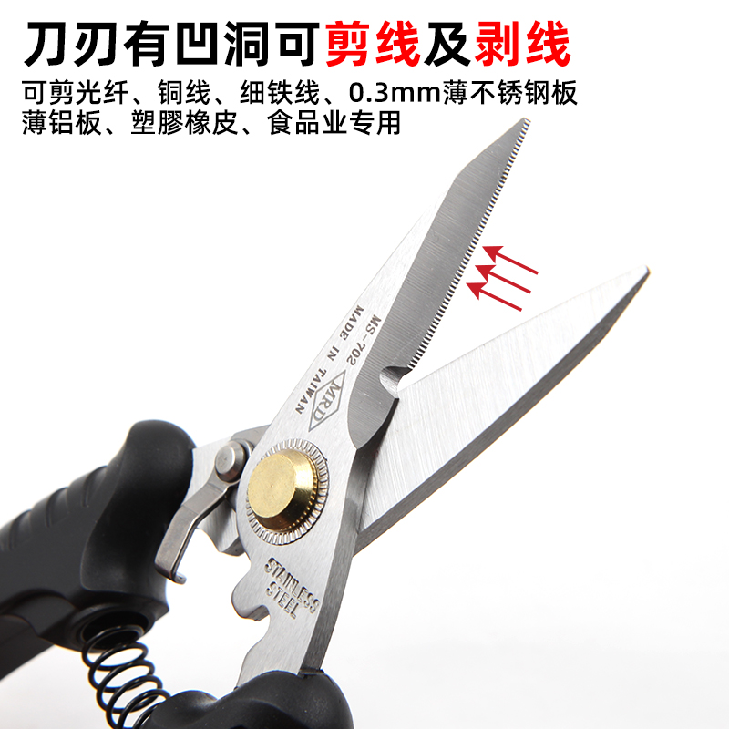 Original Taiwan Kuai Gong Kuai Li scissors MS-702 multi-function stainless steel scissors Fiber scissors Food scissors
