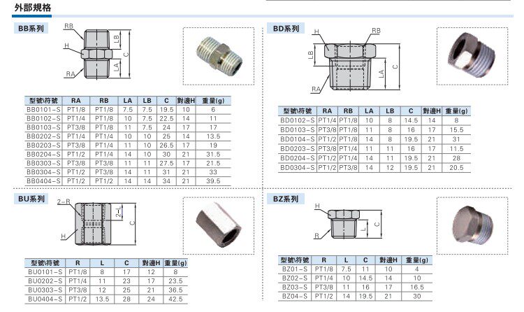 Yade polite internal and external thread straight-through quick connector BD BU BB 01 02 03 04 all metal copper