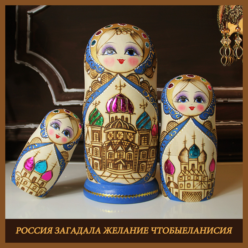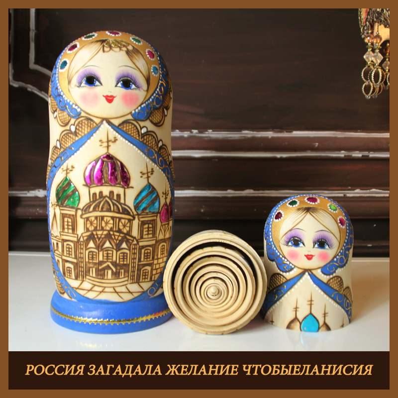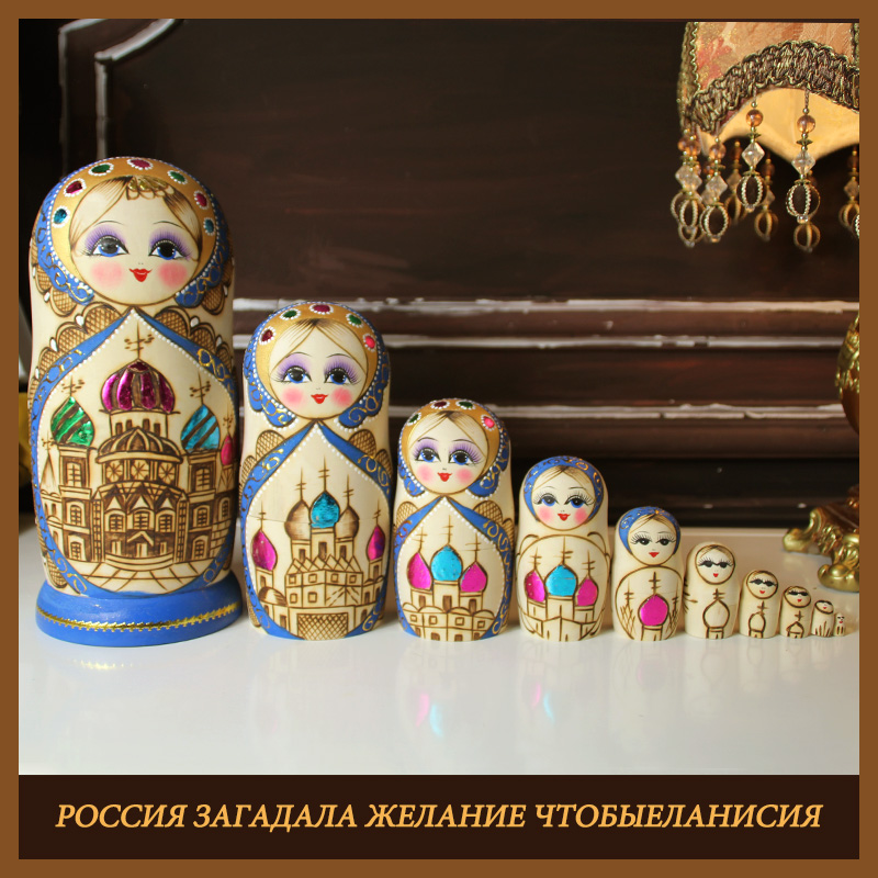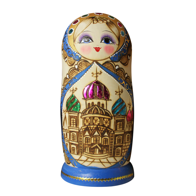 Matryoshka 10-layer cartoon cute imported blue building high-grade wooden tasteless gift Matryoshka