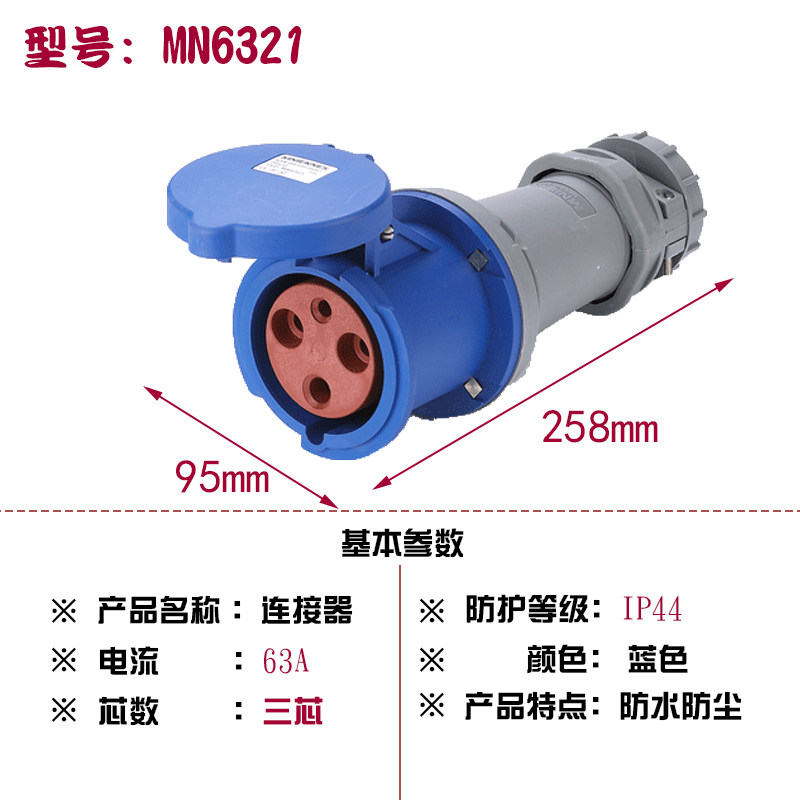 Zhejiang Guan MNIEKNES three-core 63A220V industrial waterproof active connector socket MN6321