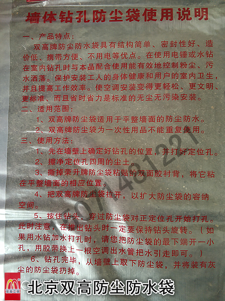 Rhinestone drilling air conditioning hood dustproof waterproof bag double height thick bag hit the wall eye electric hammer punch hole dust cover