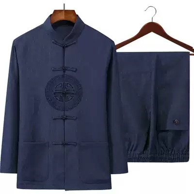 Middle-aged and elderly cotton linen Tang suit men's long sleeve suit spring and autumn linen long sleeve shirt