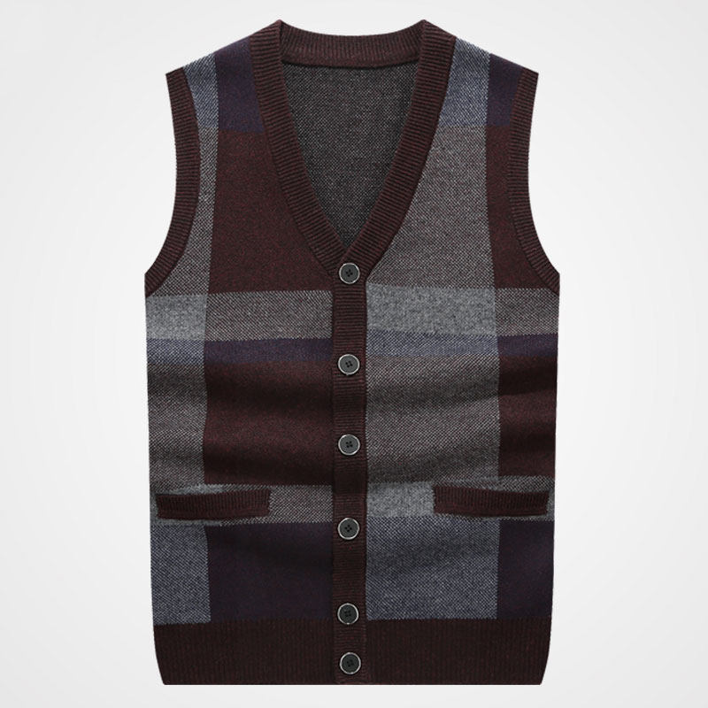 Spring and autumn and winter thickened knitted vest men's waistcoat middle-aged old man dad with wool sweater cardigan vest
