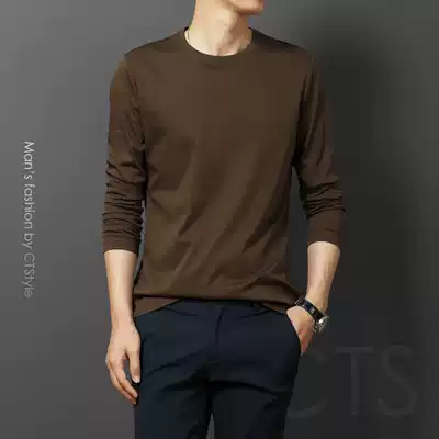Autumn mercerized cotton men long sleeve t-shirt round neck solid color Korean loose large size solid color silk base shirt men cs