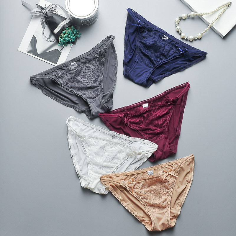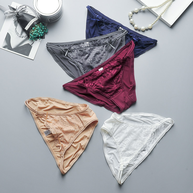 Sexy underwear women hollow lace breifs low waist Ice Silk breathable small shorts ladies sex safety pants
