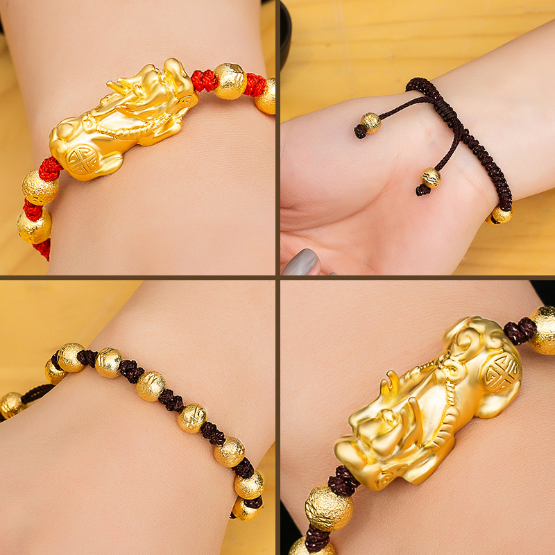 Jinghu Vietnam velvet sand gold Pixiu hand chisel men's red rope hand chisel female hand-woven transfer beads 2022 new