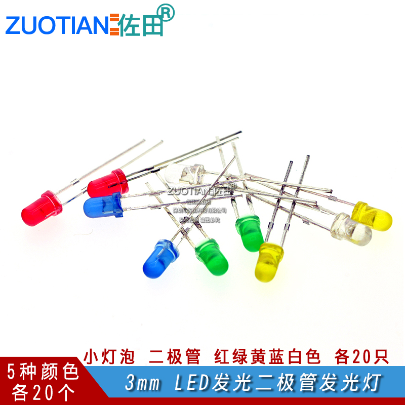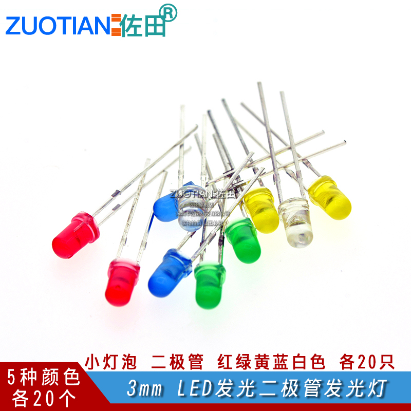 3mmLED LED light emitting light component package experimental small bulb diode red green yellow blue white