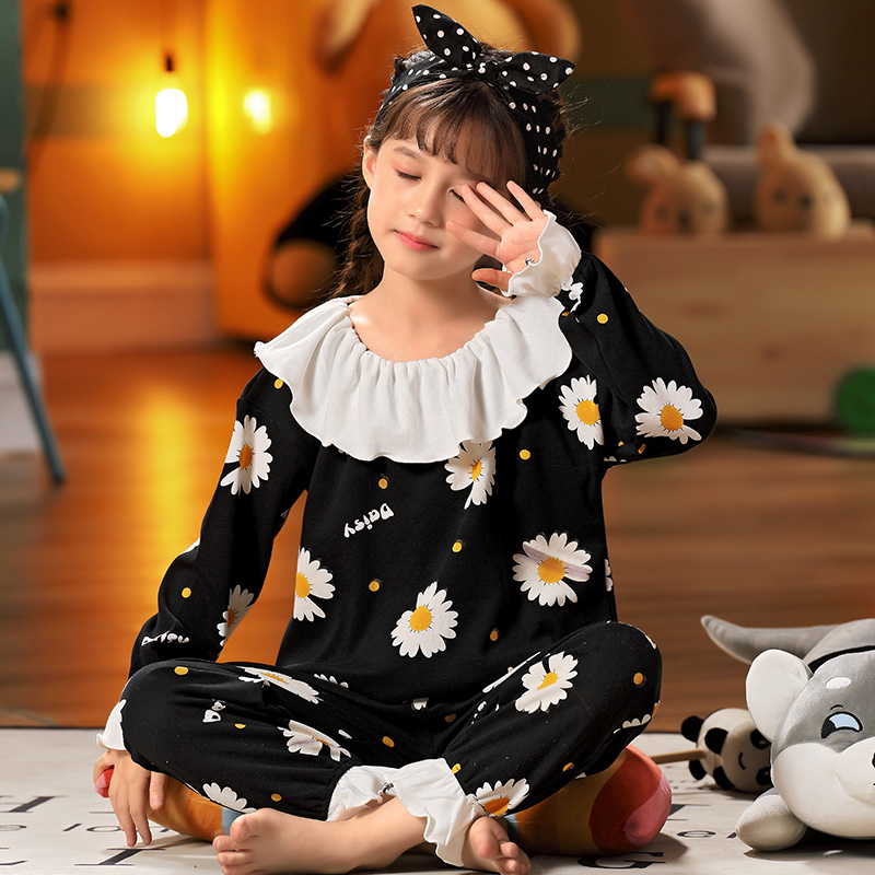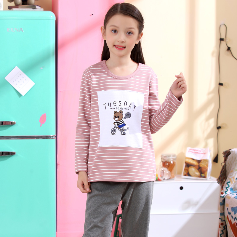 Teen Pyjamas Girl Pure Cotton Fall Long Sleeve Junior High School Student 12-18 Year Old Spring Autumn and CUHK Children's Home