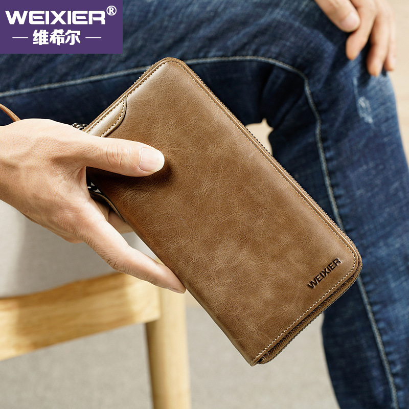 Donbass-new vintage leather handbag men's business casual single zipper men's clutch
