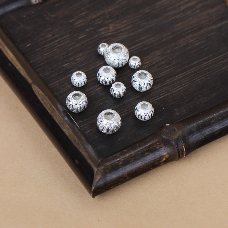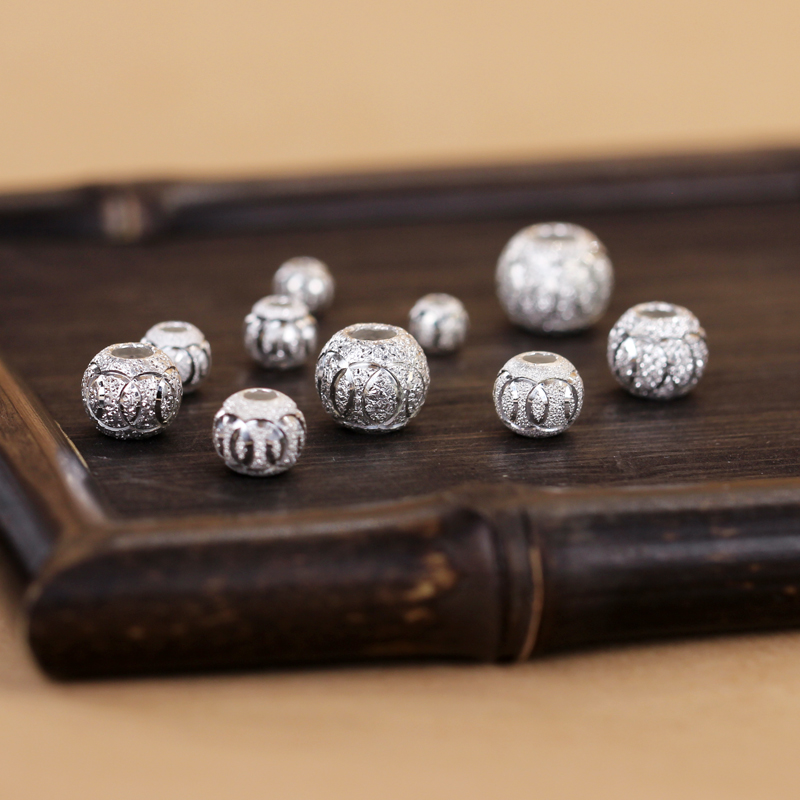 S925 pure silver frosted transfer beads macroporous sepal beads Beads Flower Pattern Round Beads DIY Hand-string Hand Condensed accessories