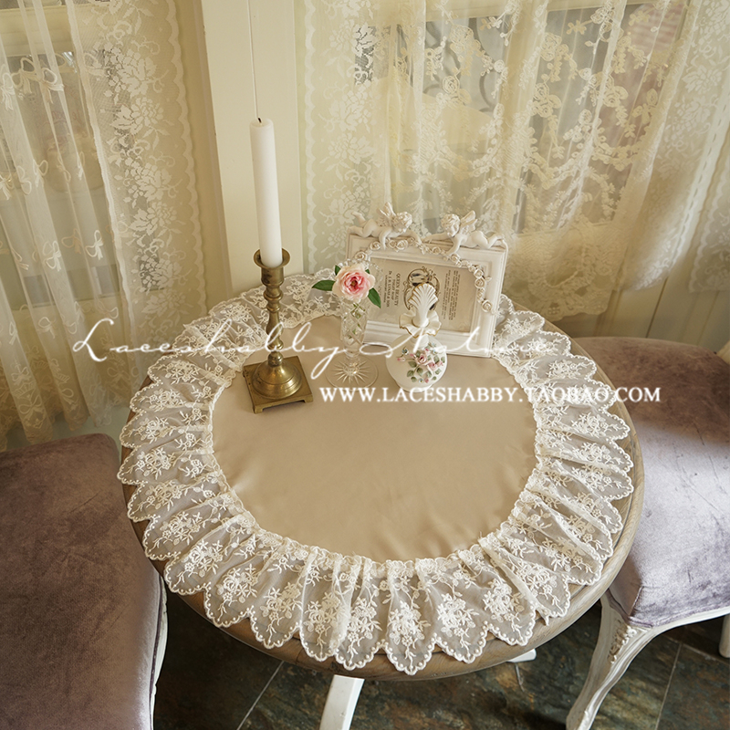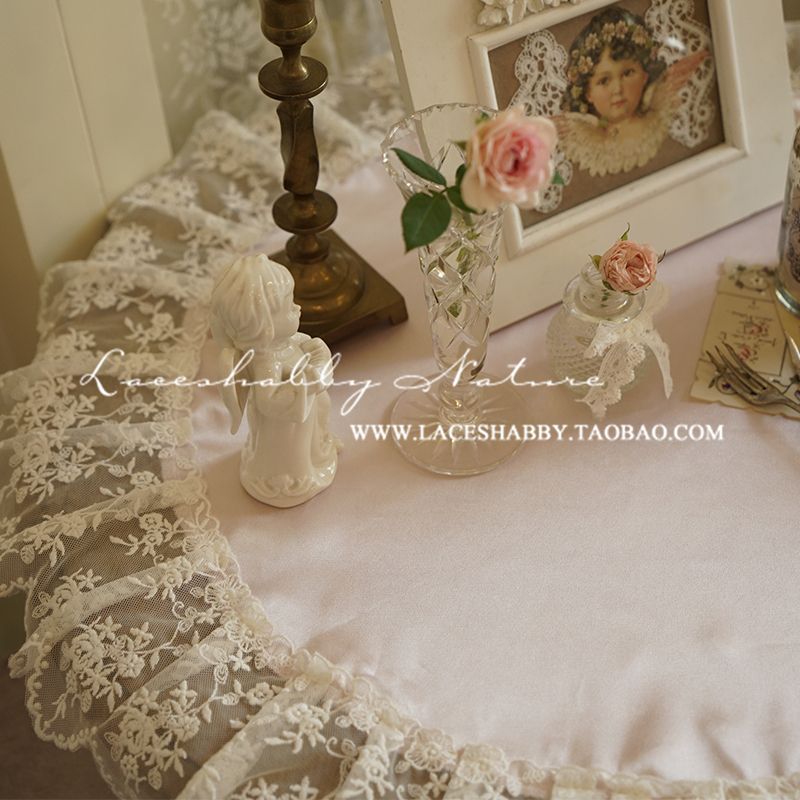 Vintage French cotton lace embroidered luxury satin laceshabby original handmade custom drapery tablecloth