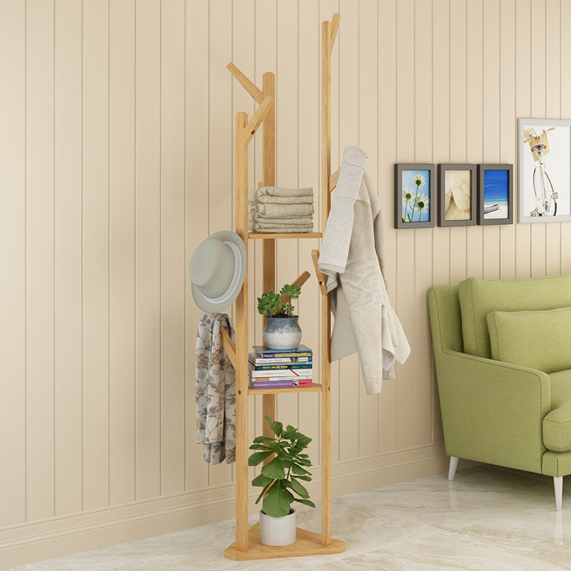 Simple clothes hat rack solid wood bedroom hanging clothes hanger floor minimalist modern clothes rack tidying shelf living room containing shelf