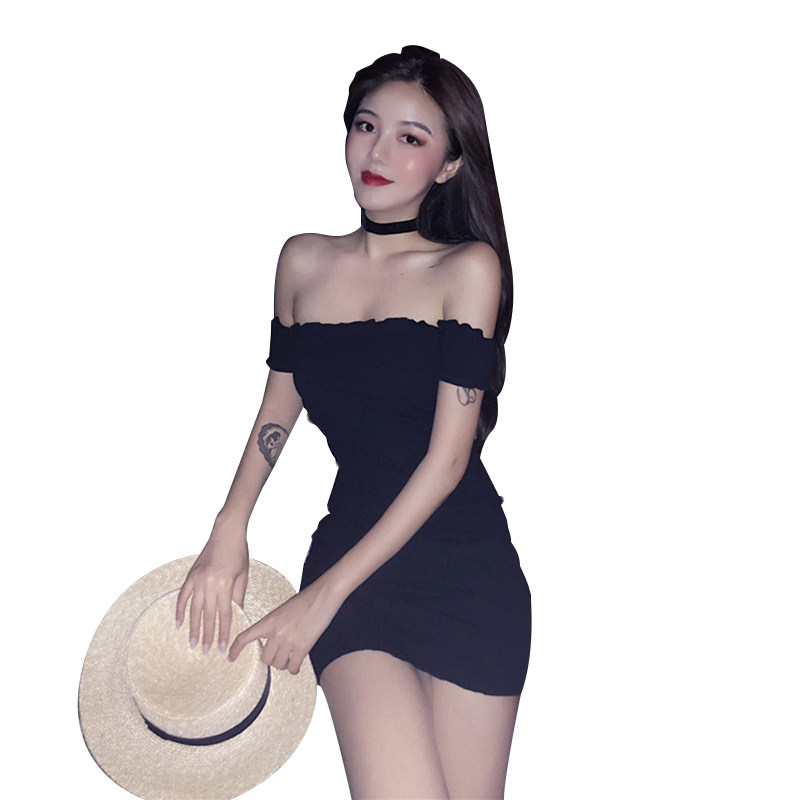 2021 autumn new sexy slim waist bag hip skirt thin one-line collar strapless dress short skirt women's clothing