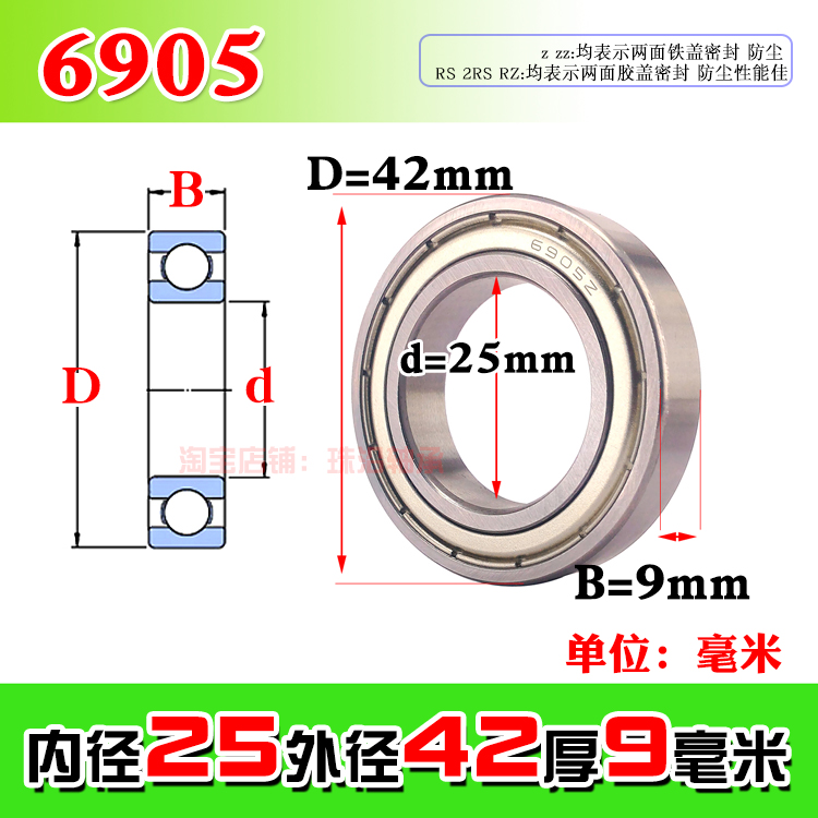 Deep groove ball thin wall rolling bearing 6905Z ZZ 6905RS 61905 inner diameter 25mm 25mm diameter 42 thickness 9mm-Taobao