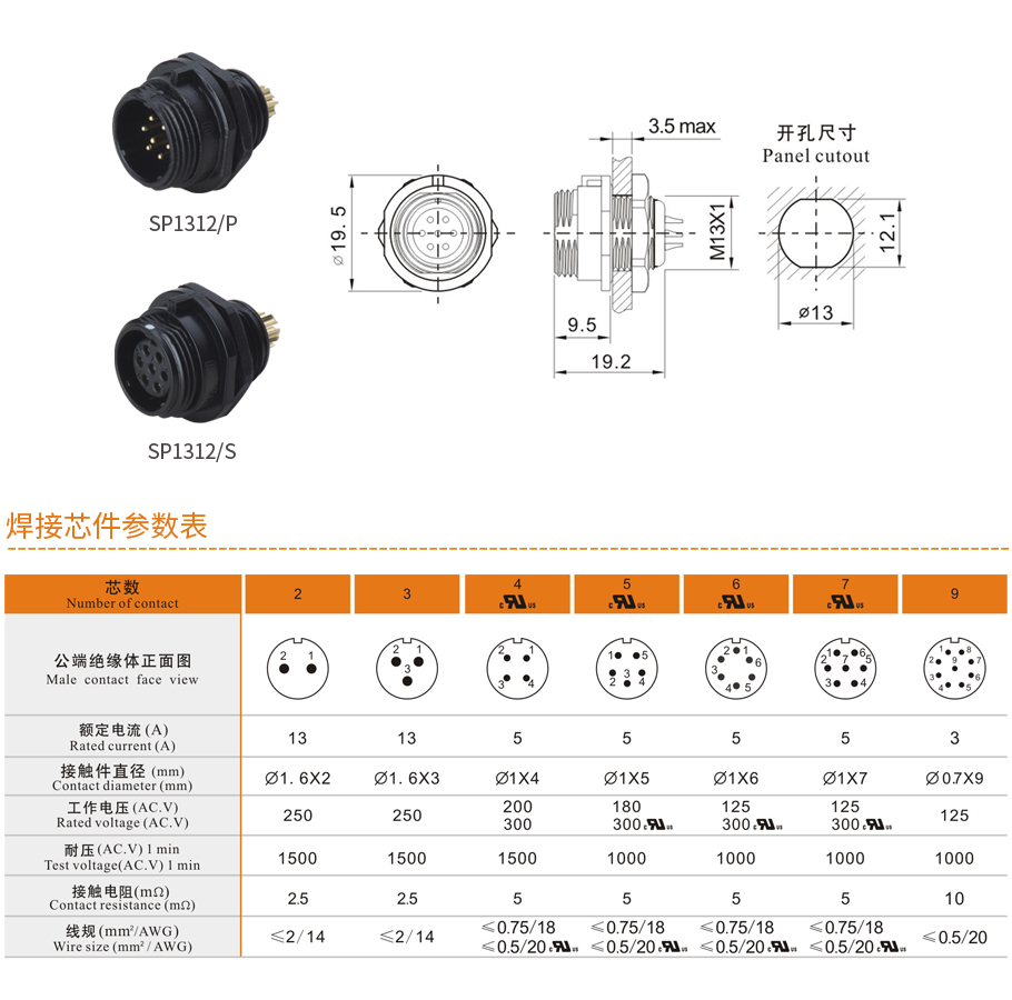 WEIPU Weipu Electric Rear Nut Socket SP1312P S 2-3-4-5-6-7-9 Core