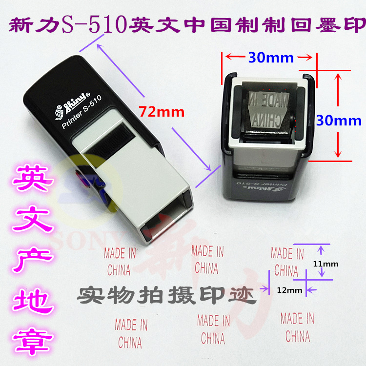 China Made Back to Ink India MADE IN CHINA ten thousand CHAPTER TIPPING BUCKET SEAL ENGLISH ORIGIN CHAPTER 12 × 11mm