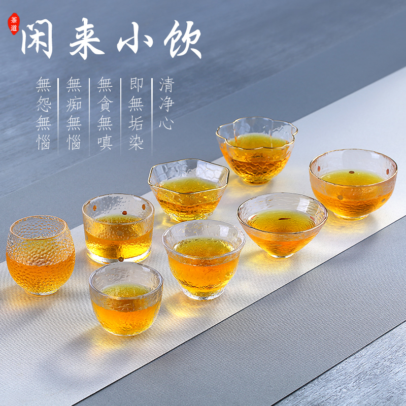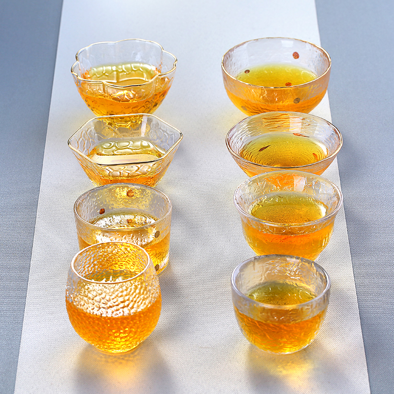 Japanese-style hammered glass tea cup master cup high temperature resistant glass painted gold small tea cup transparent master kung fu tea set