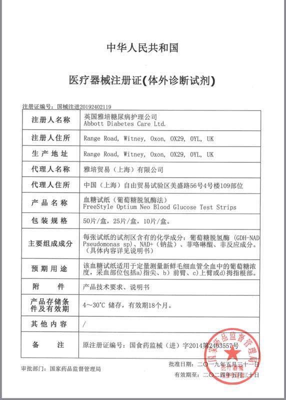 (no instrument) 50 slices of blood sugar (effect period 22 years) 9 50 needles 50 slices of alcohol cotton sheet (no instrument) 100 tablets blood glucose (effect period 22 years 9-end) 100