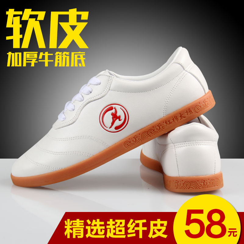 Tai Chi Shoes than Soft Bull Leather Wear Resistant Bull Gluten Bottom Women's Summer Martial Arts Shoes Men Practice Kung Fu Shoes Doorball Training Shoes