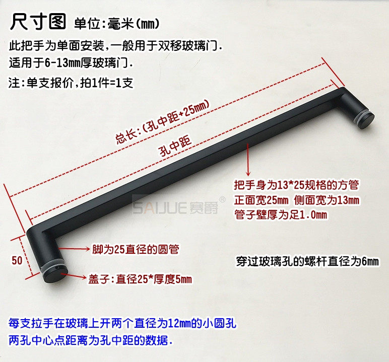 304 stainless steel single side bathroom shower room glass door handle sliding door sliding door handle brushed black titanium gold