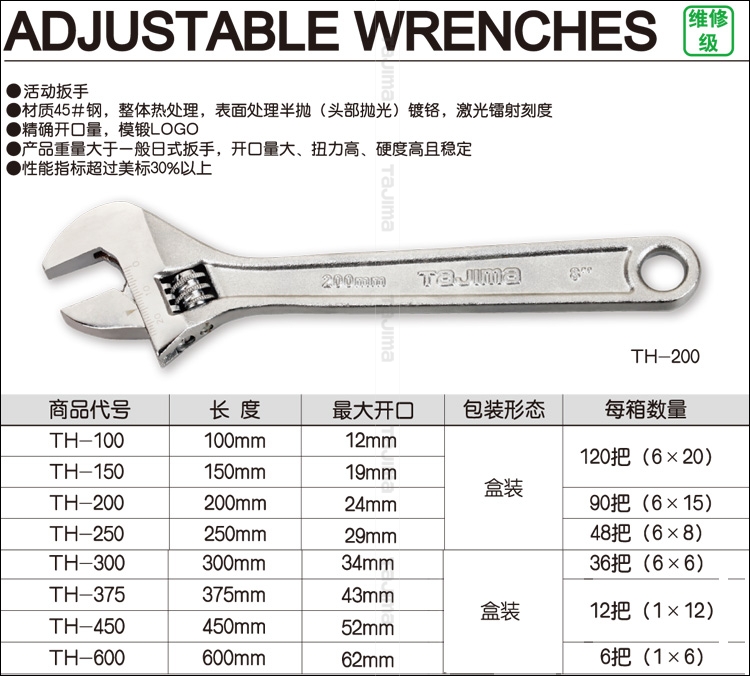 Promotion of Japan's Tajima adjustable wrench live wrench quick wrench tool 6 inch 8 inch 10 inch live wrench