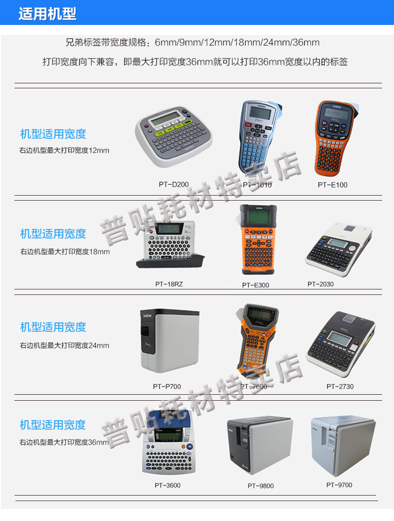 Pstick domestically made photocopy paper TZ2-243 white bottom blue word sign machine ribbon 18MM suitable for PT-2430PC