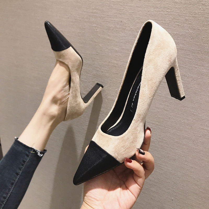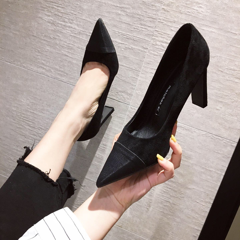 High heel shoes female summer coarse heel pointed black 2022 spring new 100 hitch teenage girl little clear new red French style single shoes