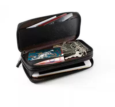 Junge head layer cowhide mobile phone key change card bag double zipper men and women passport driver's license multi-function hand bag