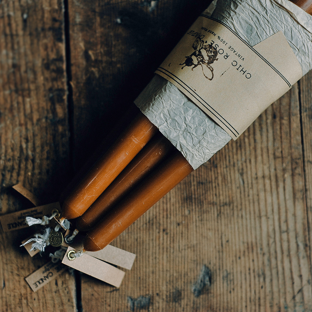 CHICROSE natural beeswax handmade long candle branch smokeless retro amber romantic dinner candlestick candlelight