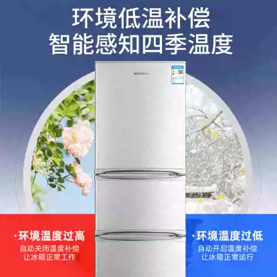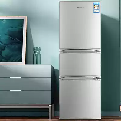 Hyundai 215L three-door refrigerator household refrigerator small and medium rental room energy-saving silent refrigerated refrigerator ultra-thin